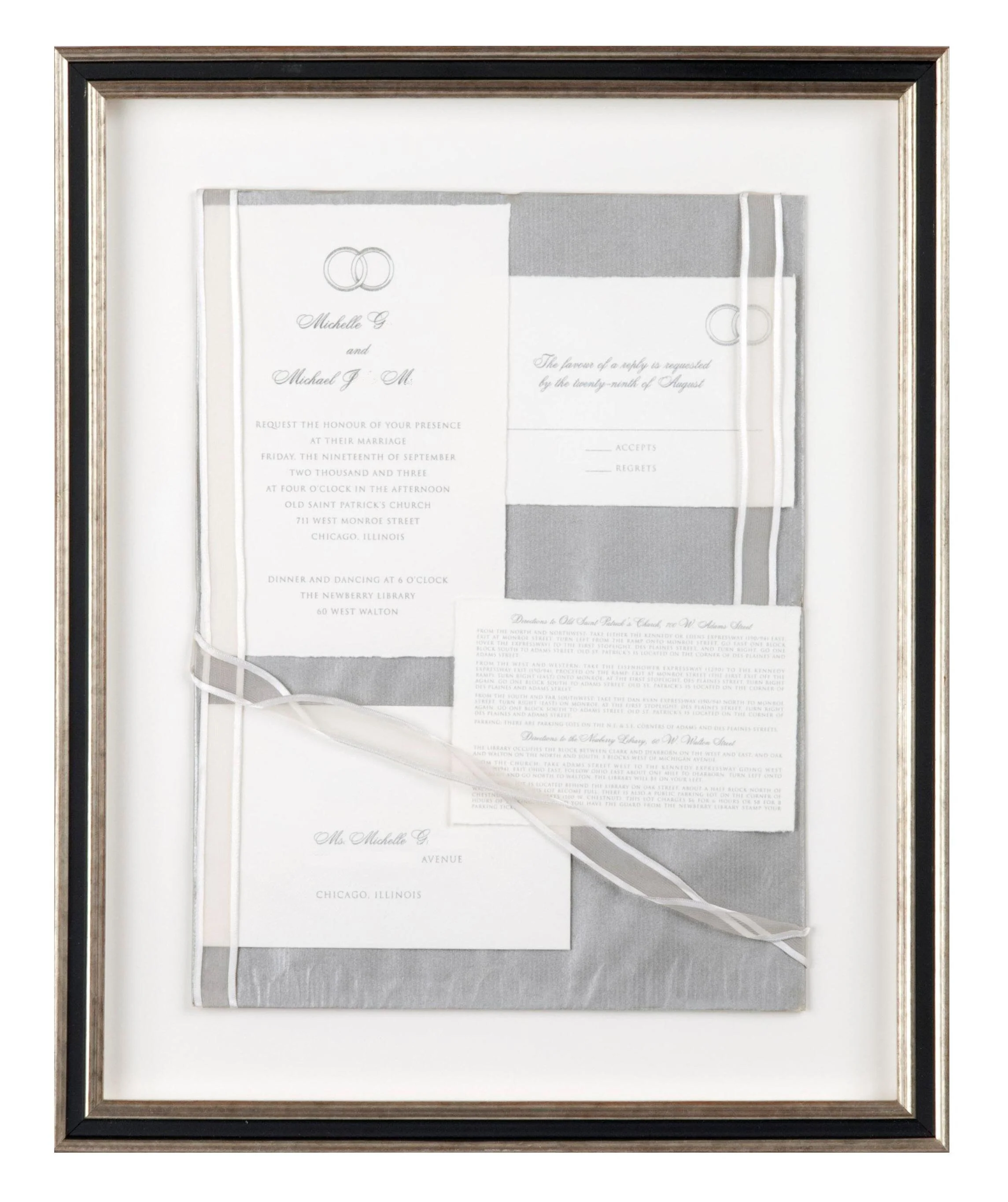 We can frame so many special things to memorialize everyone's special day for years to come. To see examples of wedding framing and more, check out our Inspiration Gallery.