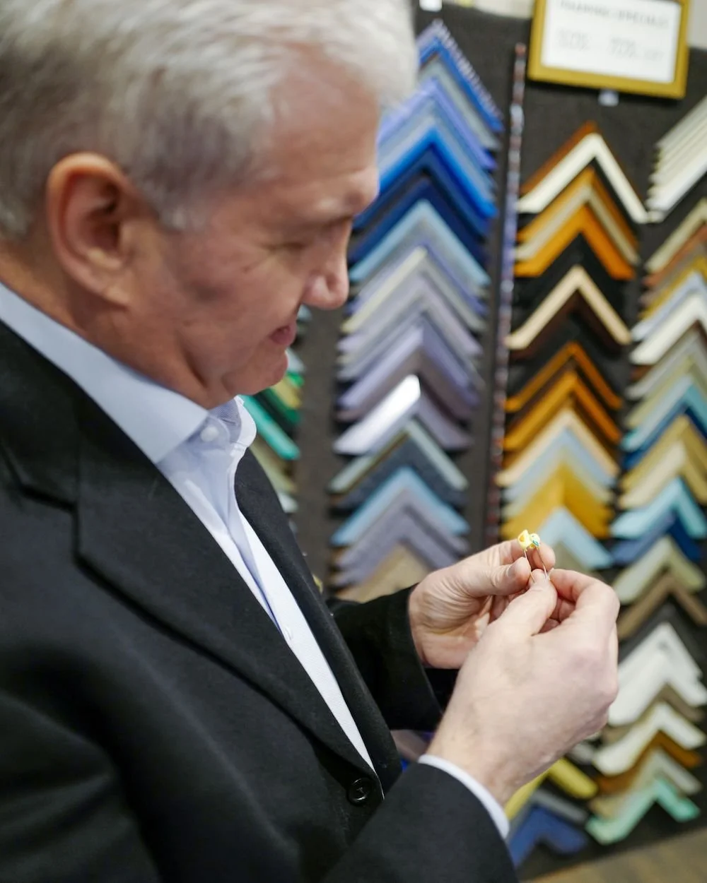In my office at Artists Frame Service. From that original yellow pin to today celebrating our 45th year in business…it’s a full circle moment.